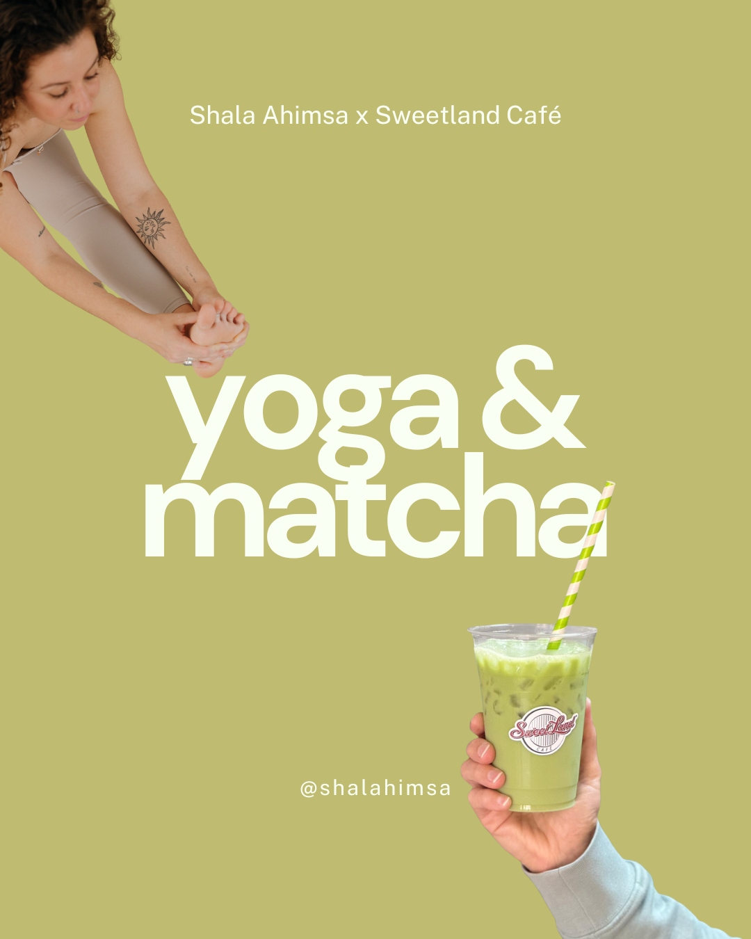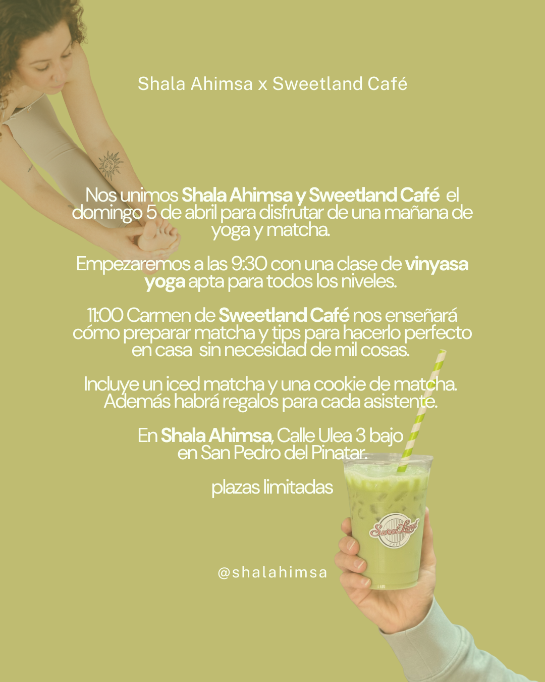 Nos unimos Shala Ahimsa y Sweetland Café el domingo 5 de abril para disfrutar de una mañana de yoga y matcha. Un taller para los amantes del match.